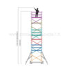Ponteggi in alluminio a sei campate con altezza di metri 10,34 – Carico massimo sul ponteggio: 400 kg – Numero di operatori: 2 – Dimensioni 2,00 x 1,20 metri – Normativa: HD1004 classe di carico 3 (pari a kg/mq 200) ed EN1298 per i manuali – Modello con ruote livellanti.